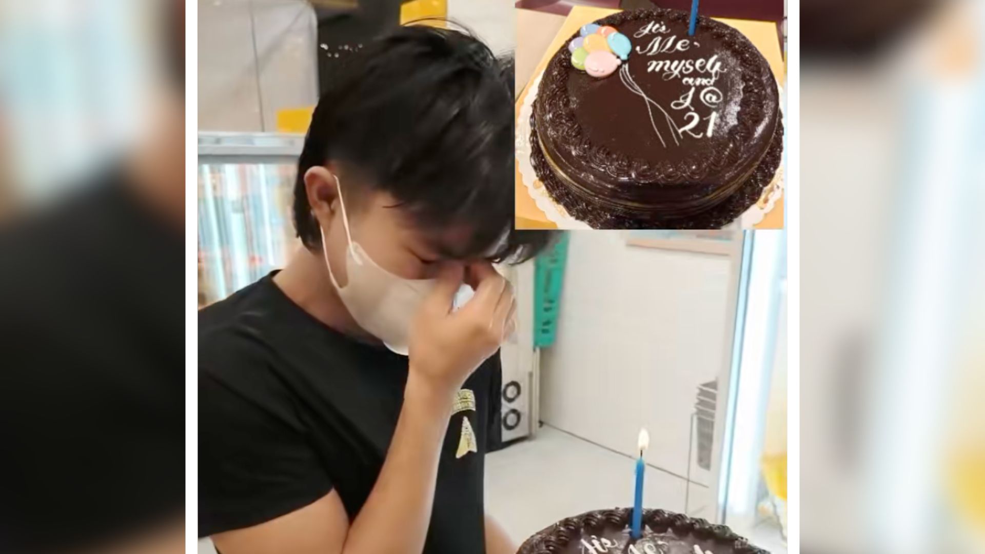 A simple cake purchase turned into an emotional celebration when staff members of a bakeshop in Manila surprised a young man who was spending his birthday alone.